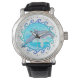Delfín saltando a través de un símbolo maorí con un océano azul y una velera detrás.