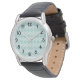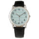 Este reloj masculino tiene un diseño art deco de diamantes superpuestos en verdidor (verde) y azul en un campo de blanco.