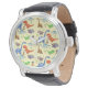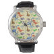 El diseño de los relojes murales del mundo Dino incluye lindos dinosaurios, volcanes y palmeras.