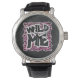 Reloj De Pulsera Diseño Salvaje Leopardo Negro y Rosa Fucsia