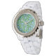 Un reloj de la muñeca Diamante de imitación del esmalte blanco muy bonito, con un patrón de flores de perinela azul brillante de estilo rústico en un fondo verde oscuro. Parte de la colección Posh y Painterly 'Periwinkle Patch', este patrón se puede ajustar fácilmente para que se ajuste a cualquier reloj de pulsera.