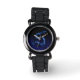 El diseño de este eWatchFactory Purpurina Watch es un dragón de araña azul curling que se extiende sobre las llamas del azul frente a un cielo nocturno con la constelación de estrellas Draco.