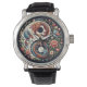 El fondo está compuesto por un símbolo de Yin y Yang exquisitamente decorado, donde dos dragones vibrantes y detallados representan la dualidad y el equilibrio. Uno de los dragones, en tonos cálidos de rojo y naranja, contrasta con el otro, en tonos fríos de azul y dorado, mientras giran en armonía alrededor del centro.