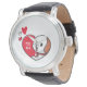 Un cachorro adorable con una expresión conmovedora, rodeado de corazones rojos, con la frase "Miss You" escrita con una letra encantadora, y la opción de cambiar la frase para que se adapte a su mensaje.
