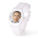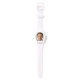 Estilos blancos o rosas disponibles. Correa de silicona con cierre de hebilla. Agua resistente a 30 metros. Función de bisel ajustable.