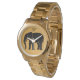 Un único reloj de diseño unisex, con una majestuosa y emblemática silueta de elefante africano sobre un fondo de color dorado, con un monograma de personalizable sobre él en la posición de las doce. Un accesorio elegante y muy personal para los amantes de los elefantes de ambos sexos. Diseño original disponible exclusivamente en ©EleSil tienda online.