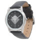 Elegante Médica MD Caduceus Black Gray Monogram Watch es perfecto para una idea de regalo de graduación de un estudiante de medicina. La banda es negra y está disponible en una variedad de estilos y colores. La cara de reloj es un diseño moderno en tonos negros y grises y un símbolo médico blanco en el centro con números numéricos "MD" y blancos. El monograma de tres letras está en el centro inferior en letras minimalistas pequeñas. HAGA CLIC EN PERSONALIZAR LA OPCIÓN PLANTILLA E INICIALES
