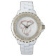 Elegante Monograma E Rosa Oro sobre fondo blanco, no se utiliza oro rosa real en la fabricación. Reloj monogramado de esmalte blanco Diamante de imitación