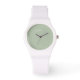 Elegante sage green nombre de guión blanco Watch. Personalizar el nombre.