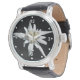 Reloj de muñeca de bonito con una foto de un solo florecimiento alpino de una Edelweiss, sobre un fondo negro. Los puntos y números blancos decoran el borde exterior de la cara. Personalizar para agregar el texto que desee.