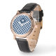 Elegante reloj monogramado blanco de la Marina Azul con un bonito estilo retro con un patrón punteado de azul con puntos blancos. El reloj es elegante y es agradable de usar con tu inicial o como regalo para tu amigo. Personalízalo con tu inicial.
