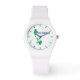 Mapa estilizado de Filipinas en un reloj de pulsera. Impreso en verde y azul sobre blanco. Reloj de estilo filipino.
