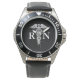 La enfermera licenciada RN Caduceus Medical Black Watch es un gran regalo para una enfermera. El reloj de cuero negro está diseñado con un símbolo blanco y gris caduceus y "RN" centrado en la cara de reloj de personalizable negro.