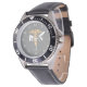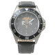 Manténgase al día con su programa ocupado con estilo con Modern Nurse RN Black Gray Monogram Mens Watch. Es un diseño moderno con su monograma inicial de tres letras en el centro inferior. Tiene una cara de fondo gris personalizable y un símbolo falso médico caduceus dorado en el centro. Hace un regalo perfecto de graduación de enfermeras masculinas. Haga clic en la opción personalizar plantilla e introduzca el monograma.