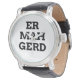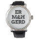 Reloj de diseño de texto de tipografía dorada y divertida con una palabra del popular meme de Ermahgerd. Ermahgerd es un camino muy ofensivo y arriesgado para decir "¡Dios mío!" Personalizar con su propio texto y color de fondo. Utiliza un traductor de ermahgerd como este [http://ermahgerd.jmillerdesign.com/#!/translate] para hacer tu texto personalizado aún más tonto!