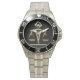 Las Escalas de Justicia inspiradas en el Art Deco se representan en tonos dorados sobre negro. Con un campo de texto personalizado para su monograma a las 12:00. Juntos con esta elegante banda de acero inoxidable y la injustificable cubierta negra, es perfecto para el abogado, juez, estudiante de derecho, parajurídico, etc. en su vida!