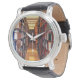 Este reloj de pulsera te lleva a caminar por un largo pasillo de estanterías de libros en las pilas de una enorme biblioteca. La luminosidad de la habitación deja entrever las hileras de libros en un arcoiris de colores: rojo, verde, azul, negro, blanco, dorado, marrón, morado. El ángulo simétrico crea un patrón abstracto geométrico que parece llevar al infinito. Las reflexiones sobre el suelo recién encerado contribuyen a la composición artística general.