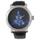 Reloj De Pulsera estilizado árbol de Navidad SlipperyJoe azul brill