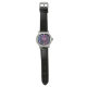 Un reloj con una imagen de fantasía azul, rosa y negra del espacio cósmico con estrellas y nebulosa espesa.