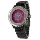 Este impresionante reloj de muñecas tiene una cara rosa con números grises y un impresionante medallón gris.