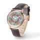 reloj de Rosa de oro de mujer. Este impresionante reloj Woman's presenta pineconas pesosa metálicas de cobre sobre un fondo verde texturado. Este diseño está basado en baldosas artesanales del artista de Oregón Fay Jones Day. Esto es para personas que aman pinecones de Ponderosa o motivos artísticos y artesanales.
