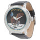 Este reloj muestra el parche de la misión del Apolo 11, el primer vuelo lunar tripulado en julio de 1969. El águila es, por supuesto, un símbolo de los Estados Unidos y también fue la señal de llamada elegida para el módulo lunar. Atrapado en las garras del águila, se encuentra una rama de olivo, símbolo de paz. Durante el primer EVA los astronautas leían de una placa que dejaban atrás: "Vinimos en paz por toda la humanidad".
