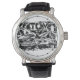 Este es un reloj de pulsera de cuero negro vintage para hombres eWatch de F-14 Tomcat. El F-14 Tomcat es un avión supersónico de combate de ala variable de dos plazas, con motor gemelo. El F-14 fue el primero de la serie de combatientes adolescentes estadounidenses que fueron diseñados incorporando la experiencia del combate aéreo contra combatientes MiG durante la Guerra de Vietnam.