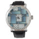 Este es un reloj de pulsera de tela de denim azul muy simulado por Guay