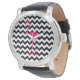 Reloj De Pulsera Flamingo rosa brillante negro y negro zigzag blanc