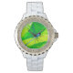 Reloj De Pulsera Flauta azul sobre el impresionismo abstracto verde