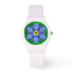 Reloj De Pulsera Flor azul de margarita sobre la belleza verde