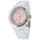 Ramas de cerezo blanco pintadas con acuarelas y tinta sobre fondo rosa