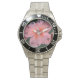 flor de jardín común rosa claro. fotografía floral natural. Un reloj clásico de estilo inoxidable.