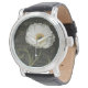© Daphne Brissonnet / Wild Apple. Una imagen de una flor blanca en plena flor con su tallo y hojas. En la imagen también se pueden ver las palabras Jardín Botánico escrito en oro y fondo negro agrietado.