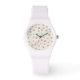 Pequeños rosas de té de moda petite, romántico patrón de flores de rosa floral vintage de los años 80 sobre un hermoso fondo blanco de marfil, reloj de pulsera retro hipster.