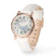 Estilo: Reloj vintage de oro rosa para mujer con correa de piel blanca