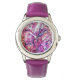 RELOJ DE PULSERA FLOREZAS BLANCAS DE FUCHSIA ROSA CON CORAZÓN