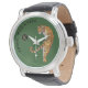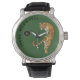Reloj De Pulsera Fondo verde del monograma del tigre joven, salvaje