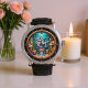 Este hilarante reloj muestra a un tiburón personalizado sentado en un inodoro, leyendo un periódico, todo dentro de un peculiar cuarto de baño subacuático dentro de un barril de madera. Es una decoración única y caprichosa, perfecta para añadir un toque de humor y personalidad a un cuarto de baño, una habitación infantil o cualquier espacio que necesite un acento lúdico.