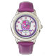 El nombre de Gabrielle significa caballeros adinerados que protegen a los niños de reloj de pulsera. Estilo de los caballeros escudo monograma letra G nombre de arte simple reloj numerado cara perfecta para en tonos morado, rosa caliente, blanco y gris. Personalice con su propio nombre y el significado de su nombre para un gran regalo personalizado único, este ejemplo es para los nombres con la letra G y actualmente lee Gabrielle. Hay otros elementos y nombres coincidentes disponibles. Dibujo único en escudo, arte gráfico y diseño de Sarah Trett. www.sarahtrett.com para www.mylittleeden.com
