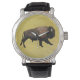 Una pintura digital del bisonte estadounidense, o búfalo, superpuesta sobre una imagen de fondo de cuero de color neuronal. El bisonte (Bison bison), el mamífero terrestre más grande de Norteamérica, es considerado una especie clave: una vez recorrieron el continente en grandes rebaños, y su presión de pastoreo ayudó a dar forma a la ecología de las Grandes Llanuras. Se han descrito dos subespecies o ecotipos: el bison de las llanuras (Bison bison bison bison), de menor tamaño y con una joroba más redondeada, y el bisonte de madera (Bison bison athabascae), el mayor de los dos y con una joroba cuadrada más alta. El bisonte es un relativamente recién llegado a Norteamérica, habiendo nacido en Eurasia y migrado por el estrecho de Bering Hace unos 10.000 años reemplazó al bisonte de estepa (Bison priscus), un inmigrante anterior que era mucho más grande. Se cree que el bisonte de estepa se extinguió debido a un ecosistema cambiante y a la presión de la caza tras el desarrollo del punto Clovis y la tecnología conexa, y a la mejora de las habilidades de caza. Durante ese mismo período, otros megafauna desaparecieron y fueron sustituidos en cierta medida por animales eurasiáticos inmigrantes que estaban mejor adaptados a los seres humanos predadores. El bisonte existente, técnicamente una forma enana, era uno de estos animales. Hubo una vez un estimado de 20 a 30 millones de bisontes, también llamados búfalos, vagando por Norteamérica. Su rango alguna vez comprendía aproximadamente un triángulo entre el Gran Lago Oso en el extremo noroeste de Canadá, al sur de los estados mexicanos de Durango y Nuevo León, y al este a lo largo de la frontera occidental de las montañas Apalaches. Las primeras autopistas de América del Norte, excepto las de mastodonte o musko, abandonadas por el tiempo, fueron los rastros de bisonte y ciervo en la migración estacional y entre los campos de alimentación y las salinas. Muchas de estas rutas, martilladas por innumerables pezuñas que siguen instintivamente las cuencas y los escudos de las crestas para evitar la mugre de verano de los lugares bajos y los cambios de nieve de invierno, fueron seguidas por nativos estadounidenses y fueron inestimables para los exploradores. El término "búfalo" puede ser considerado un nombre erróneo para este animal, ya que está muy relacionado con cualquiera de los dos "búfalo verdadero", el búfalo de agua asiático y el búfalo africano. Sin embargo, "bison" es una palabra griega que significa animal parecido a un buey, mientras que "búfalo" se originó con los zapatillas de piel franceses que llamaron a estas bestias masivas borregas, lo que significa buey o bullock, por lo que los dos nombres, "bison" y "búfalo", tienen un significado similar. En referencia a este animal, el término "búfalo", que data de 1635, tiene una historia mucho más larga que el término "bisonte", que se registró por primera vez en 1774. El bisonte estadounidense está más estrechamente relacionado con el capricho o el bisonte europeo. El tiroteo no regulado de bisontes, que culminó en matanzas masivas durante la década de 1870, redujo la población a 1,091 en 1889. Hoy, aproximadamente 500.000 bisontes viven en toda América del Norte. La mayoría no son puros bisontes, sino que han sido cruzados con ganado en el pasado y se crían como ganado en ranchos. Menos de 30.000 bisontes se encuentran en rebaños de conservación, y menos de 5.000 son de libre alcance y están libres de enfermedades. Hoy en día, los bisontes están ecológicamente extintos a lo largo de la mayor parte de su rango histórico, excepto por unos pocos parques nacionales y otras pequeñas áreas de vida silvestre. El Parque Nacional Yellowstone tiene la mayor población de bisonte de planicies en itinerancia libre (cerca de 4,000), y el Parque Nacional Búfalo de Madera tiene la mayor población de bisontes de madera en itinerancia libre (cerca de 10,000). Un bisonte tiene un abrigo de invierno oscuro, largo y oscuro, y un abrigo de verano marrón más ligero y ligero. El abrigo de invierno es tan grueso y está tan aislado que la nieve puede cubrir sus espaldas sin derretirse. El bisonte masculino es ligeramente mayor que el femenino. El bisonte de llanuras suele pesar de 700 a 2200 libras. El toro salvaje más pesado jamás registrado pesaba 2.800 libras. Cuando se cría en cautiverio y se cultiva para la carne, el bisonte puede crecer poco naturalmente pesado y el bisonte semi-doméstico más grande pesaba 3.800 libras. Las cabezas y los cuartos delanteros son masivos, y ambos sexos tienen cuernos cortos y curvos que pueden crecer hasta 2 pies de largo, que usan para luchar por la condición dentro del rebaño y para la defensa. Los venados son herbívoros, pastos en las hierbas y setas de las praderas norteamericanas. Su horario diario incluye periodos de dos horas de pastoreo, descanso y mascado de caña, y luego se mudan a un nuevo lugar para pastar de nuevo. Este movimiento regular asegura que los bisontes rara vez pastan en exceso una zona. Bison suele frotarse y rodar en el suelo creando depresiones superficiales, como platillos, llamadas wallow. El veneno se enrollará en el macizo, mojado o seco, cubriéndose con polvo o barro. Las explicaciones pasadas y las hipótesis actuales sugeridas para el comportamiento de retorcer incluyen el comportamiento de retorcimiento asociado con el desprendimiento, la interacción macho-macho (normalmente el comportamiento de descomposición), el comportamiento social para la cohesión de grupo, el comportamiento del juego, el alivio de la irritación cutánea debido a insectos mordaces, la reducción de garrapatas y piojos y la termorregulación. Las hormigas fueron una vez una característica común de las llanuras. En invierno, bison puede excavar en la nieve profunda con la cabeza para llegar a la vegetación de abajo. Los venenos tienen mala vista, pero tienen audición aguda y un excelent