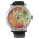© Pela Studio / Wild Apple. Imagen de un jardín con coloridas mareas. Esta imagen decorativa tiene margaritas en rojo, naranja, verde y amarillo.