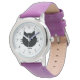 Un reloj de acero inoxidable para un gato morado de bonito con la cara de un gato que diseñé con una pequeña nariz cardíaca. Podrás personalizar fácilmente este reloj de gato morado con su nombre. Esto haría un regalo de cumpleaños perfecto para los niños, un regalo para los Navidades y más para el amante de los gatos.