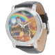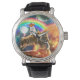Reloj De Pulsera Gato de galaxia espacial montando tigre en pizza
