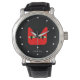 Super reloj con correa negra y fondo - y el gato rojo; la imagen es atrevida y colorida. Hace un gran regalo para alguien especial, o para usted