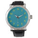 Te darás cuenta de que llevas puesto este reloj de caras verde azuladas y con números dorados.