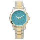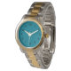 Te darás cuenta de que llevas puesto este reloj de caras verde azuladas y con números dorados.