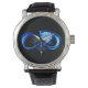 Luminous infinity symbol with glowing, beautiful, lushly blooming rose made of blue flames on black background.