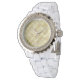 Hermoso reloj de la cara de las mujeres Diamante de imitación blancas, con nuestro diseño de notas de música doradas - imagen de fondo dorado con licencia y copyright de fábrica de gráficos