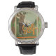 Un poster de oro vintage en la cara de un reloj. El elemento se puede personalizar.